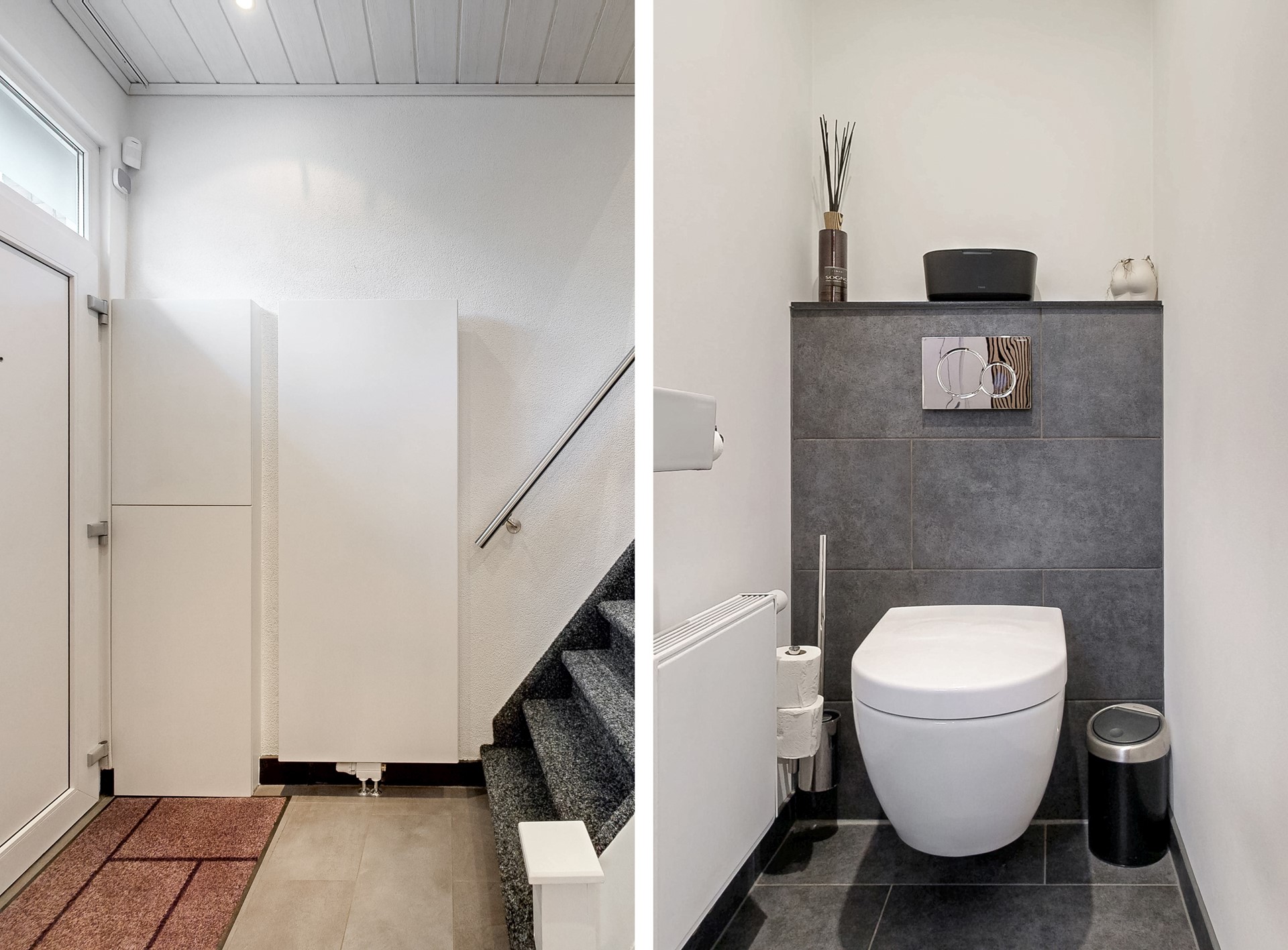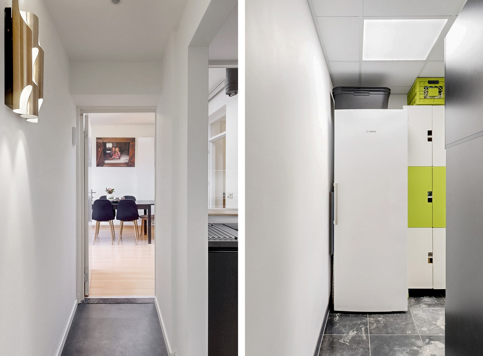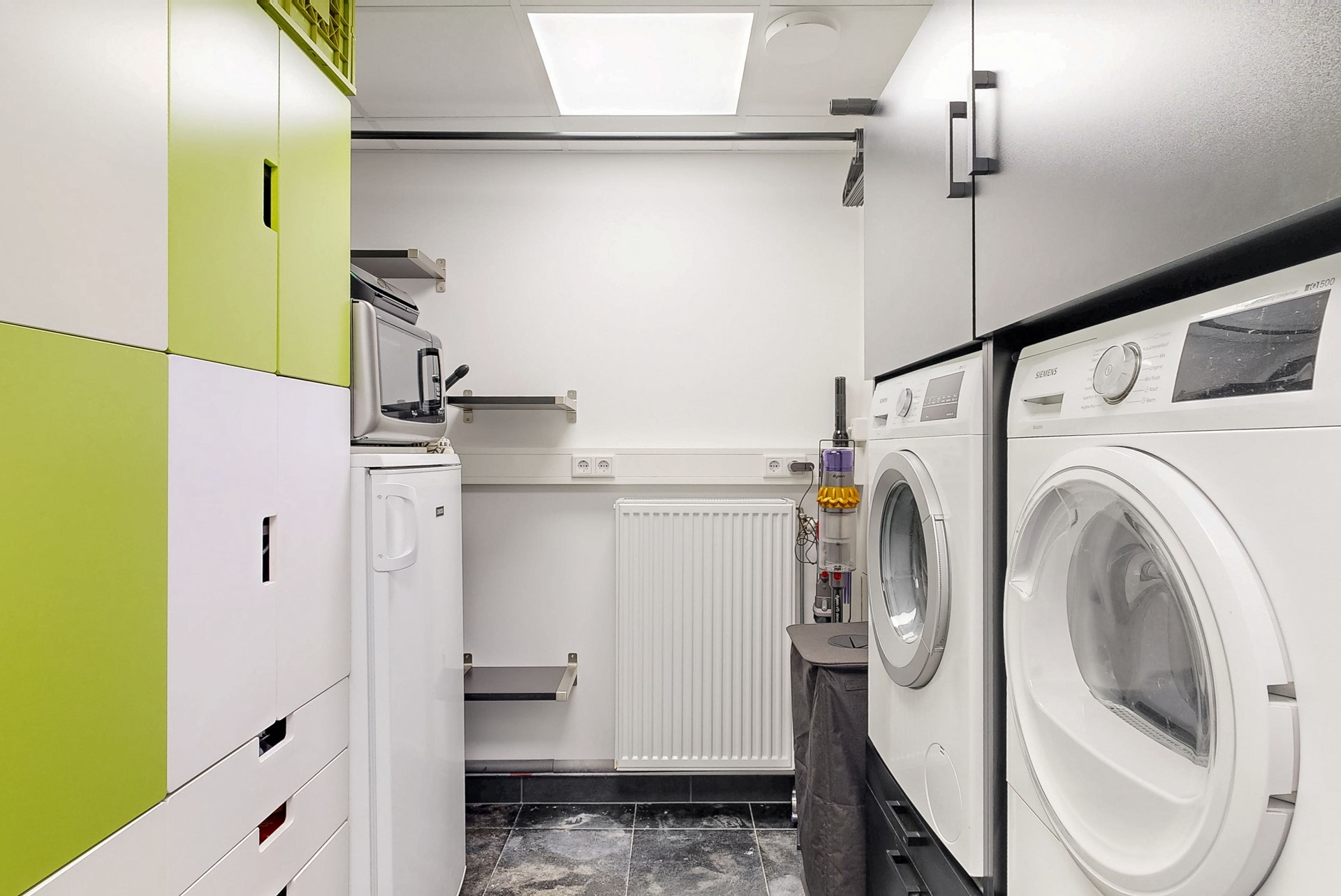 Achter de keuken ligt de bijkeuken, ideaal voor de wasapparatuur en extra bergruimte! Inbouwkasten maken deze ruimte helemaal compleet en mooi afgewerkt.