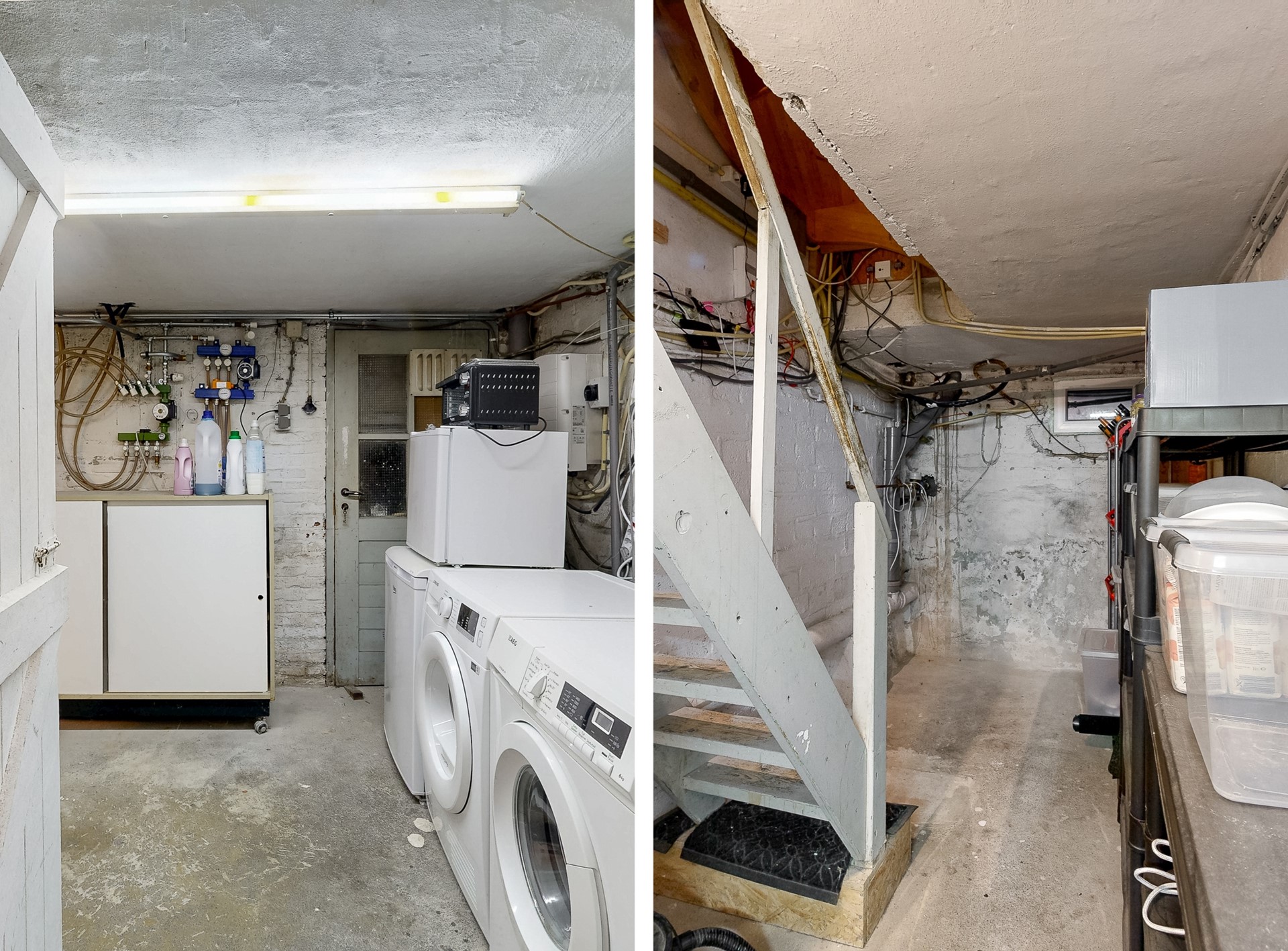 Het souterrain (de kelder) is onder de gehele woning en biedt dus extra ruimte voor de wasmachine, berging en hobby.