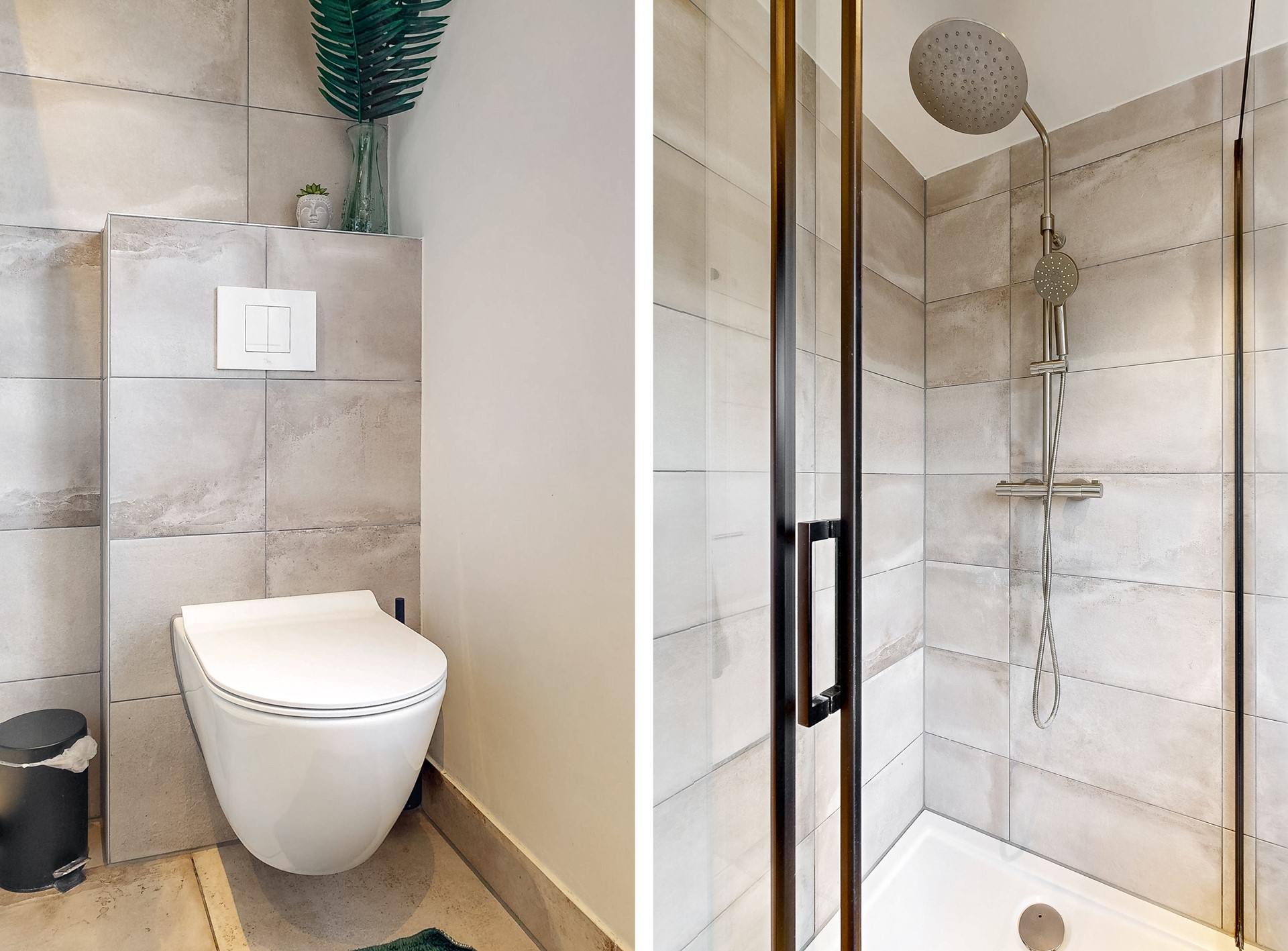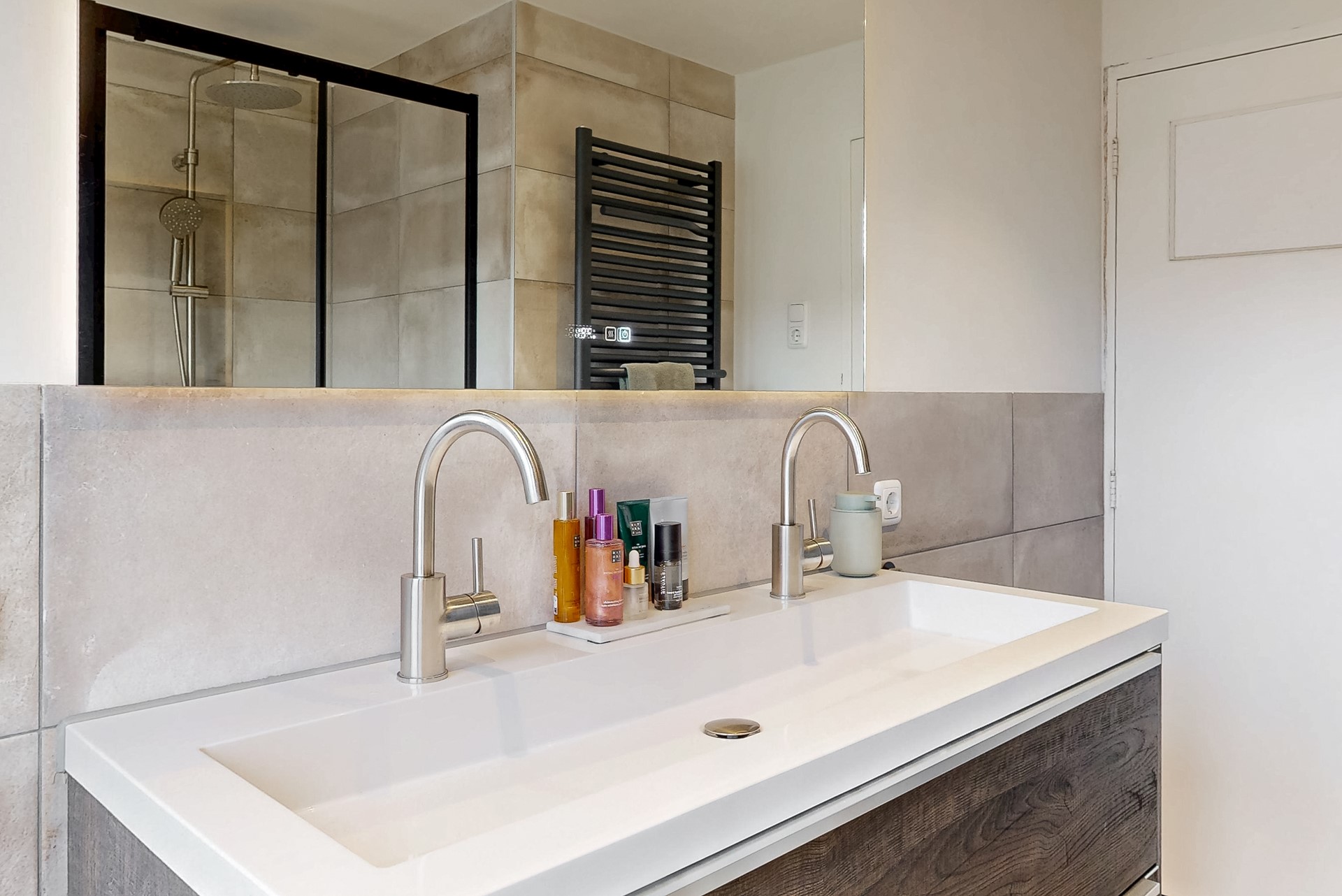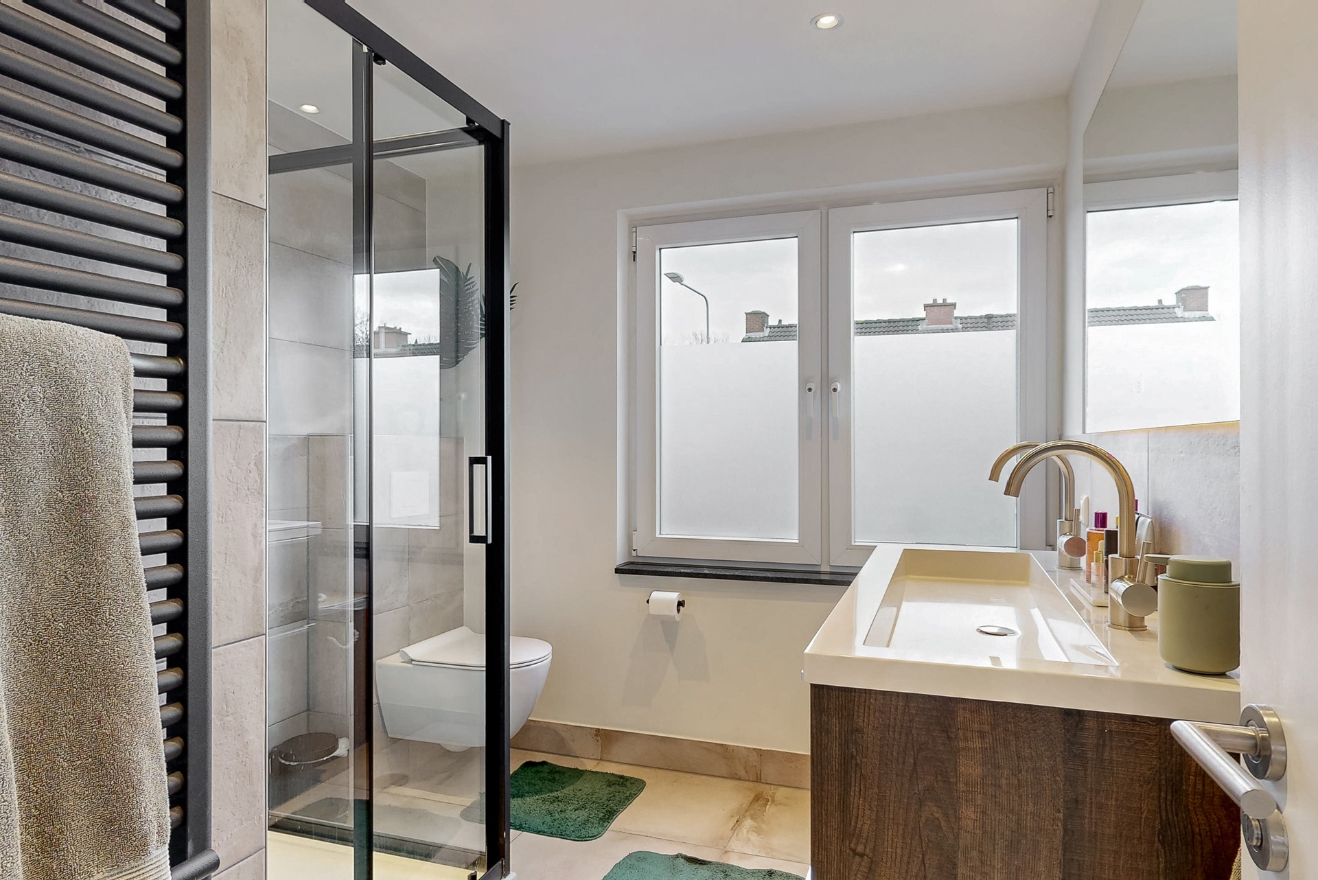 Er zijn 3 slaapkamers en de nieuwe badkamer met grote wastafel met meubel, inloopdouche uur en 2de toilet.