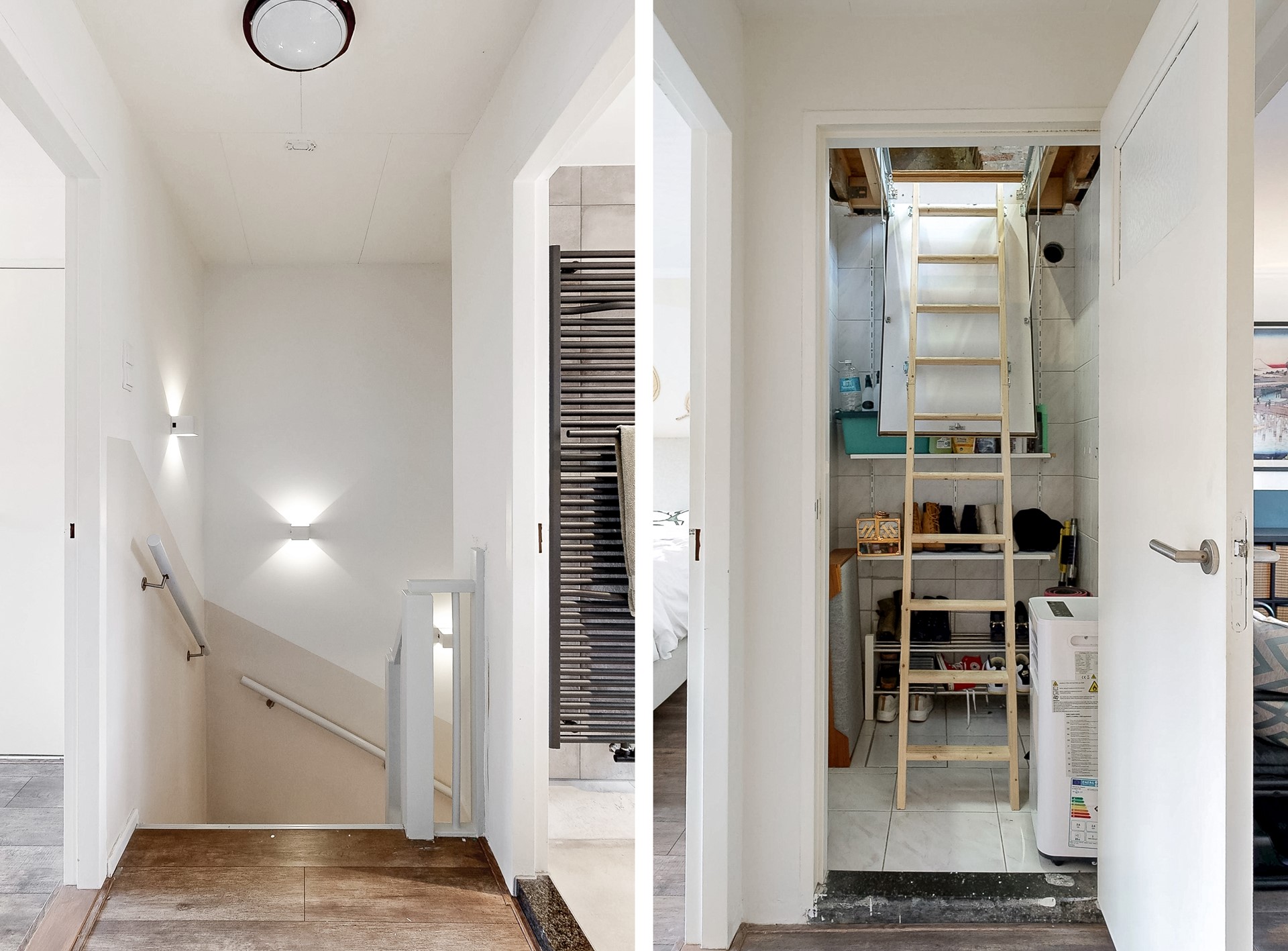 De oude douche ruimte dient nu als berging en hier staat de vlizotrap naar de zolder.