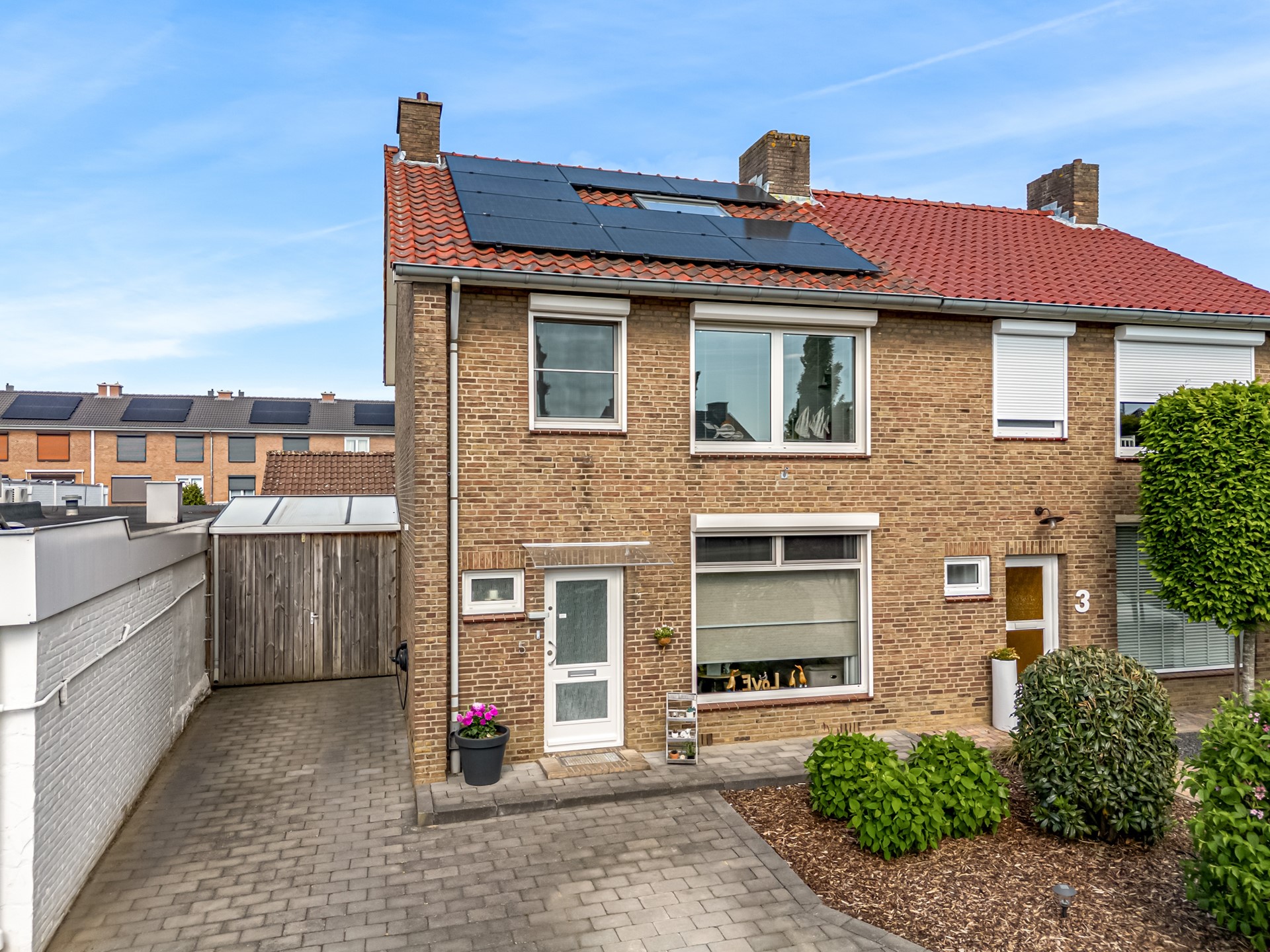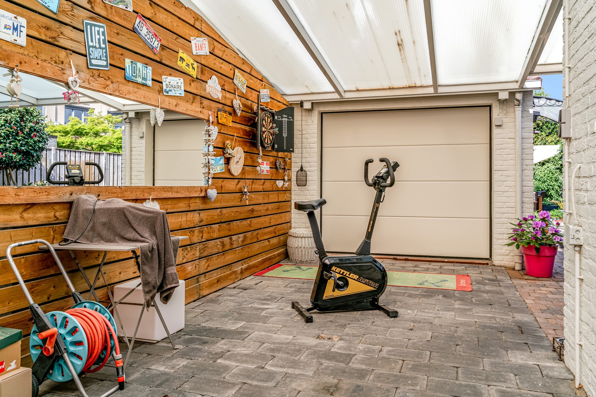 - Extra overkapping vóór de garage en een poort naar de oprit;