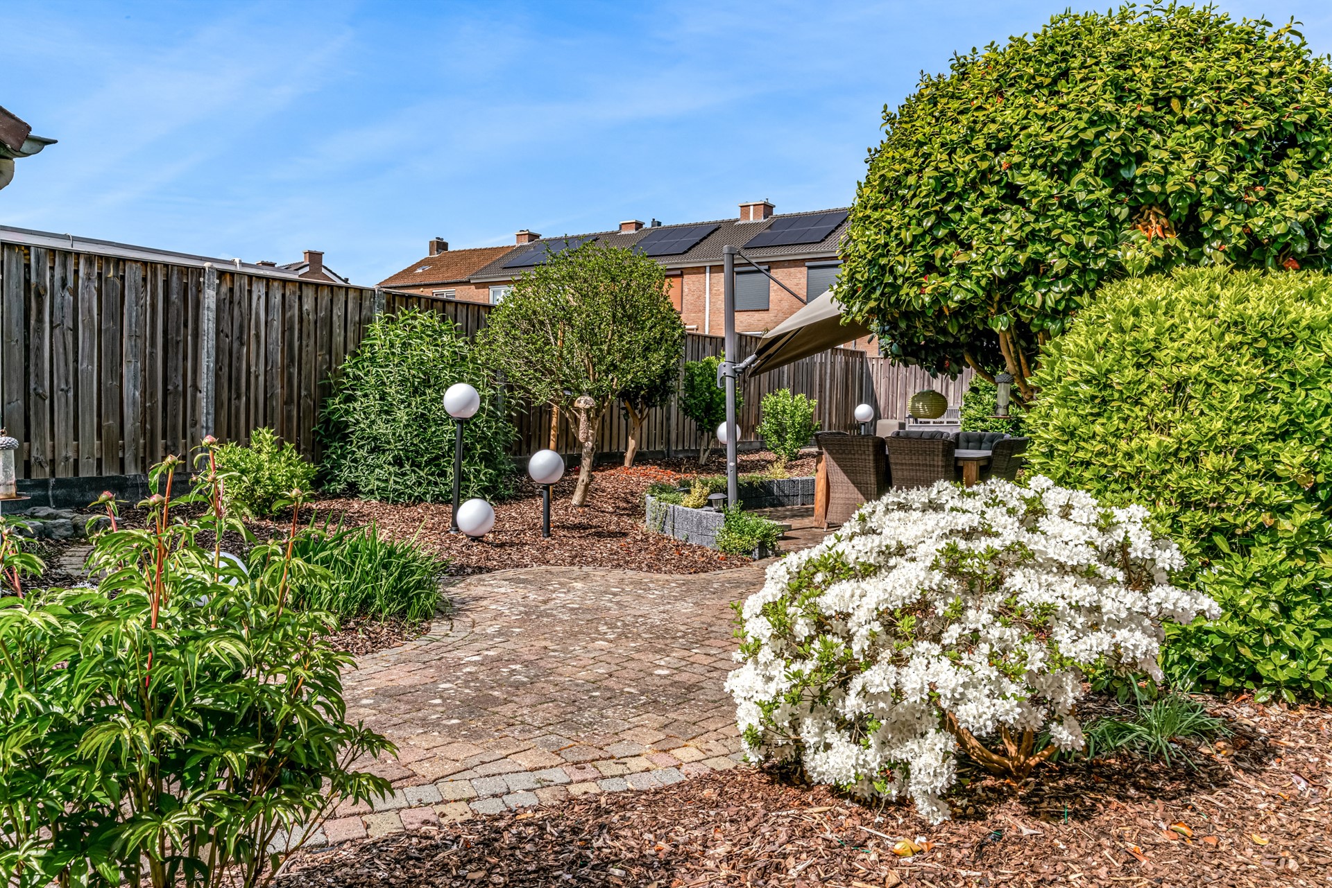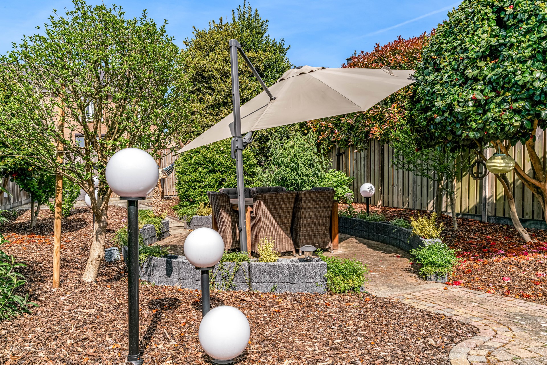 - Mooie en diepe tuin met veel zon en een overkapping;