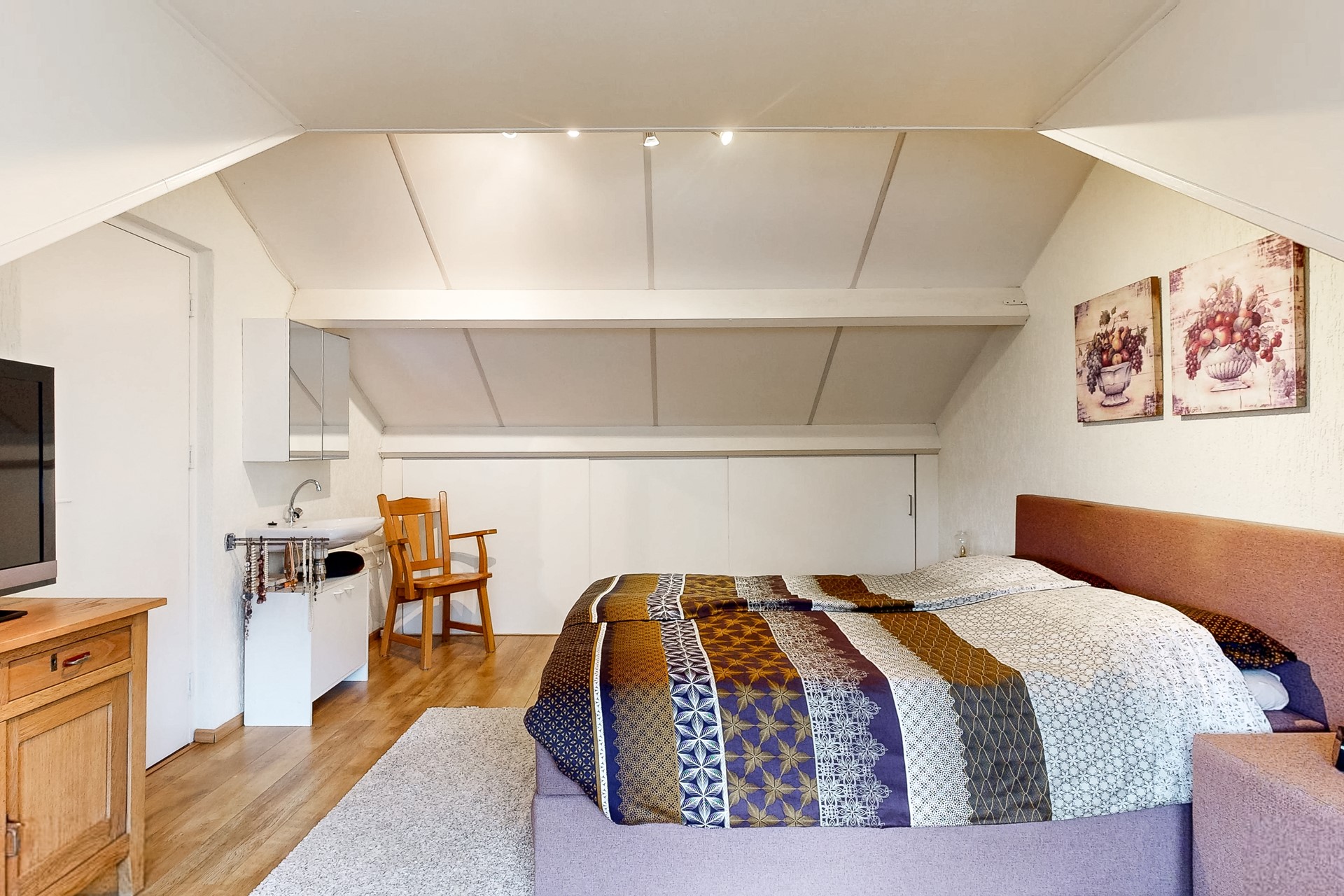 Er zijn maar liefst 3 dakkapellen op de verdieping.