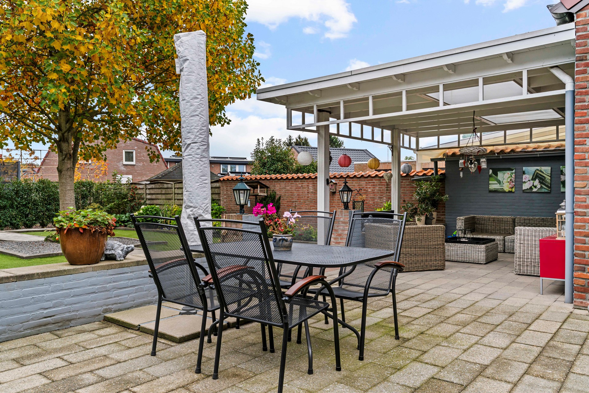 - Keurig aangelegde tuin met overdekt terras en toegang tot garage;