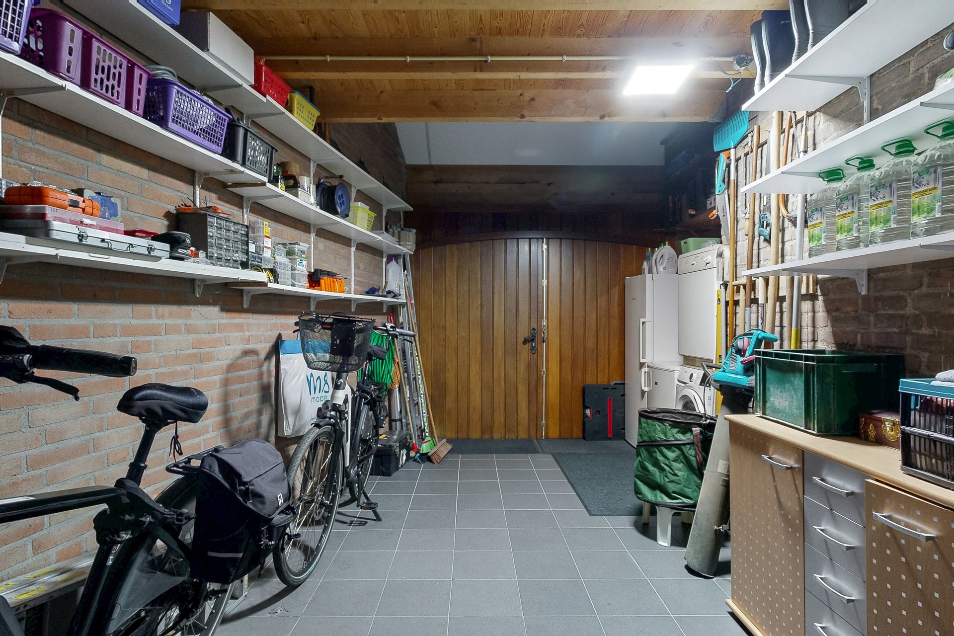 - De garage heeft dubbele deuren naar de oprit en naar de tuin. De garage is ideaal voor extra bergruimte, stalling motorrijtuig én wasapparatuur;