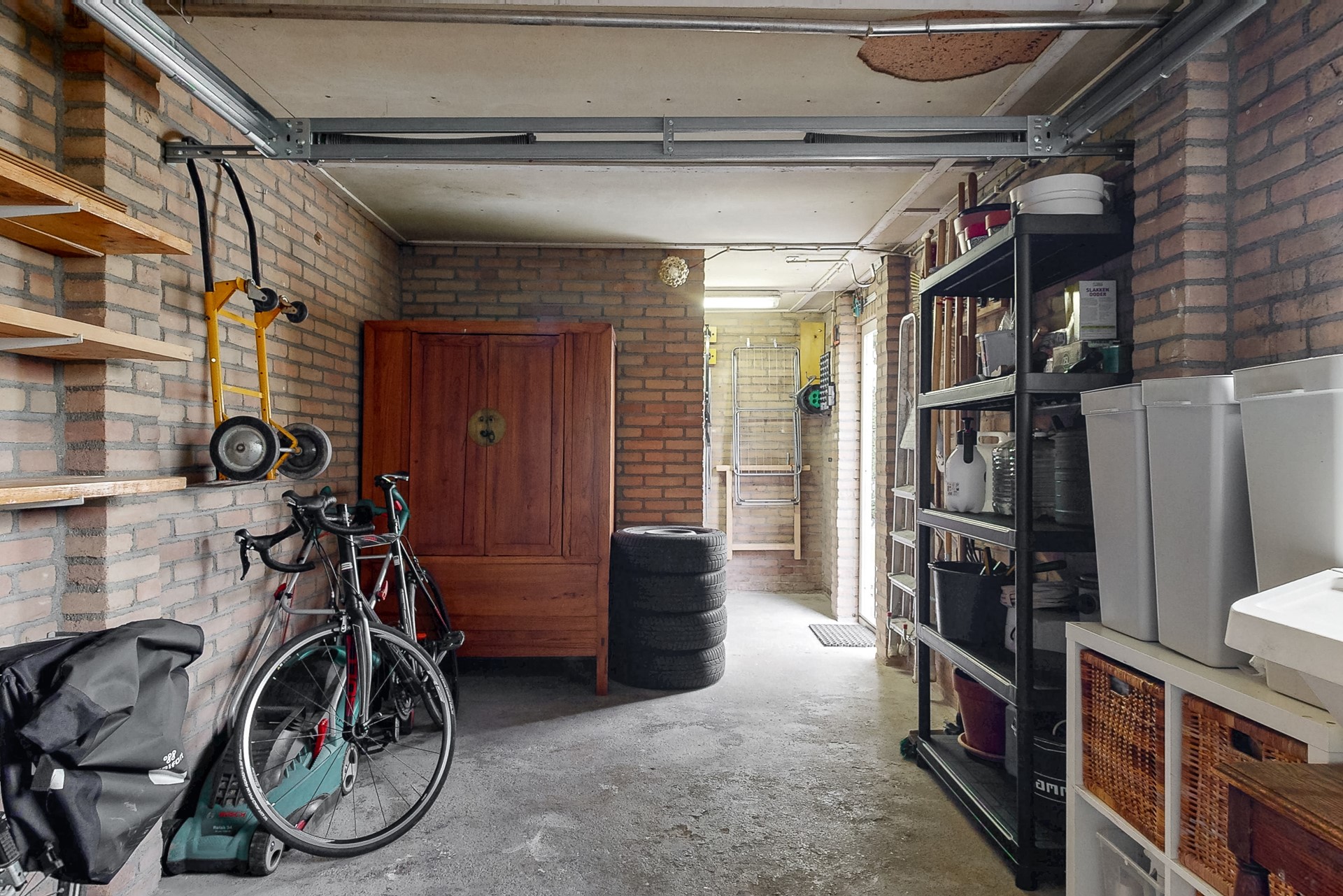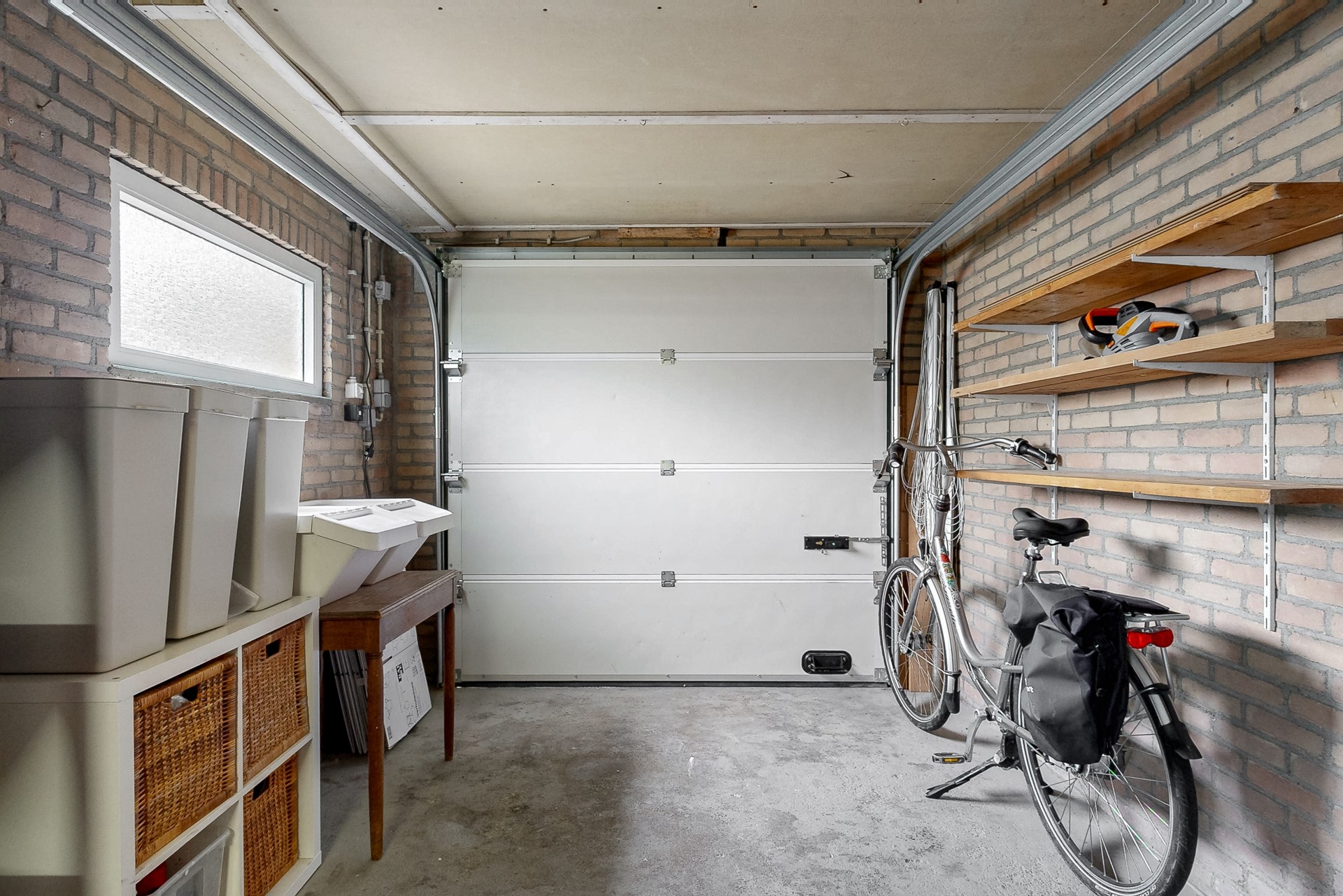 De garage heeft een poort naar de oprit en separate deur naar de tuin.